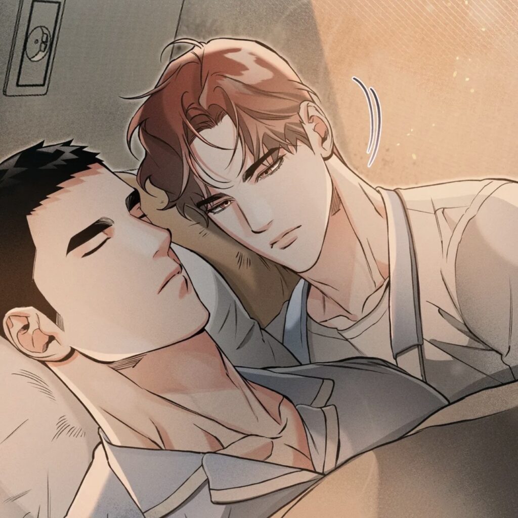 Then, a memory flashes through Mokhwa’s mind. A similar scene between the two of them happened before, that other time they were at the motel together. After an intimate moment, Mokhwa returned from a shower to find that Nakwon disappeared suddenly, leaving only a note that said something had come up. Remembering the note, Mokhwa finally asks the startled Nakwon what exactly he meant by “something came up.”