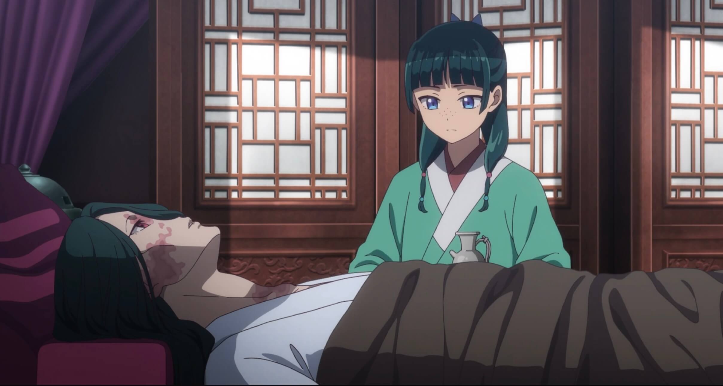 As someone who’s read The Apothecary Diaries light novels and manga, it’s really difficult sometimes for me to look at this show from the perspective of an anime-only viewer. I know more about the story than what’s on the screen, but that’s to be expected. By its very nature, light novels have more details: they are able to expand upon settings, situations, and character motivations to a degree that animated or illustrated adaptations cannot. So if an episode approaches a scene in a different way from the book, I can’t really fault it. It’s the limitation of the animated medium.