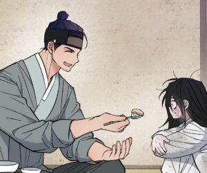 Elsewhere, Kyungjoon is visiting with the crown prince. Geumdong, sleeping in Nok’s lap, gets increasingly annoyed as he listens to their conversation. Kyungjoon apologizes for his behavior the other night at the tavern. Nok asks for Kyungjoon not be so hard on Jaeshin, and as he listens in, Geumdong decides to fast track his investigation on the three ghouls haunting the prince.